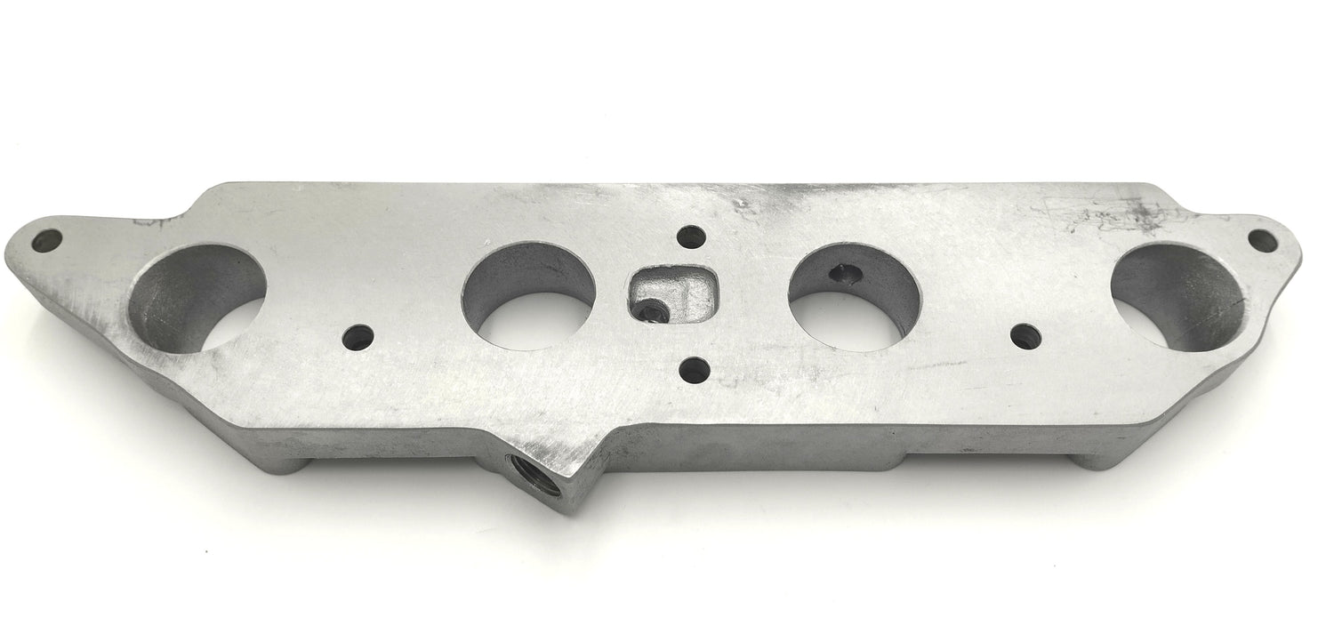 Cast aluminium inlet manifold to suit Ford Pinto engine with 2 x 45 DCOE carburettors or Alpha throttle bodies.