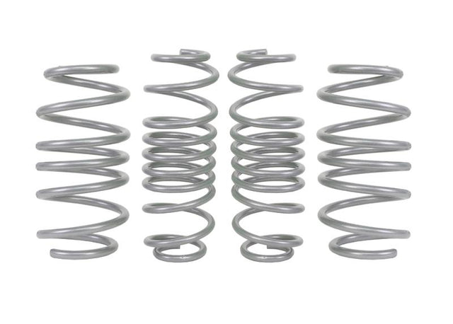 Whiteline Springs deliver improved vehicle performance whilst maintaining safety and ride quality characteristics. This kit contains 3.9kg/mm (223lb/in) front-rated springs that provide a 30mm drop, while the 2.9kg/mm (166lb/in) rated rears deliver a desirable 30mm drop. The unique and progressive rate coil design improves performance and enhances the overall appearance by lowering the vehicle's centre of gravity. Developed and manufactured in Europe from the highest quality materials, coating, and the finest tolerances guaranteeing exact fitment. Whiteline Springs are engineered for optimal balance with OEM and aftermarket shocks. For total grip activation, match with the Whiteline rear anti-roll bar BFR80.